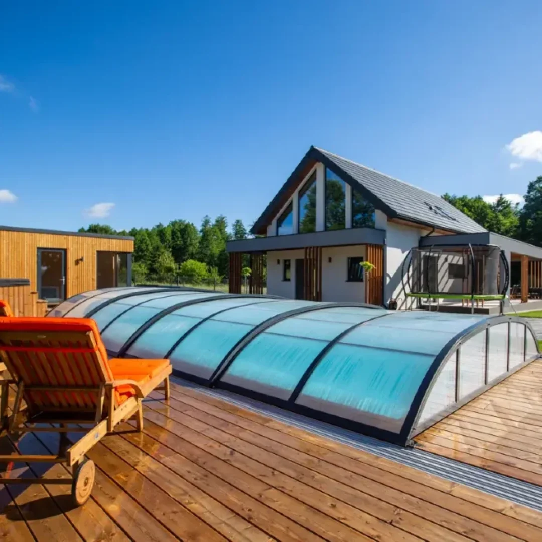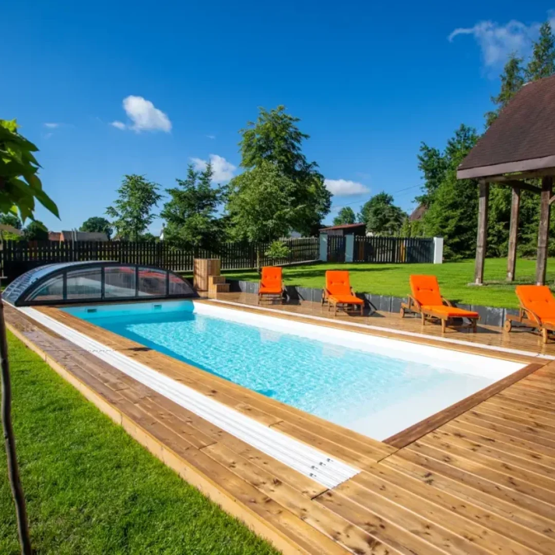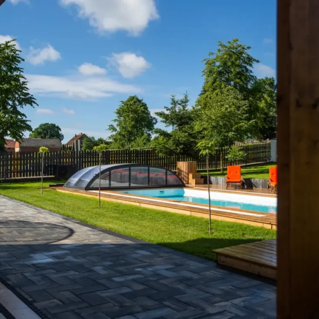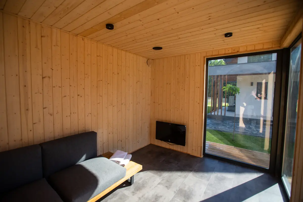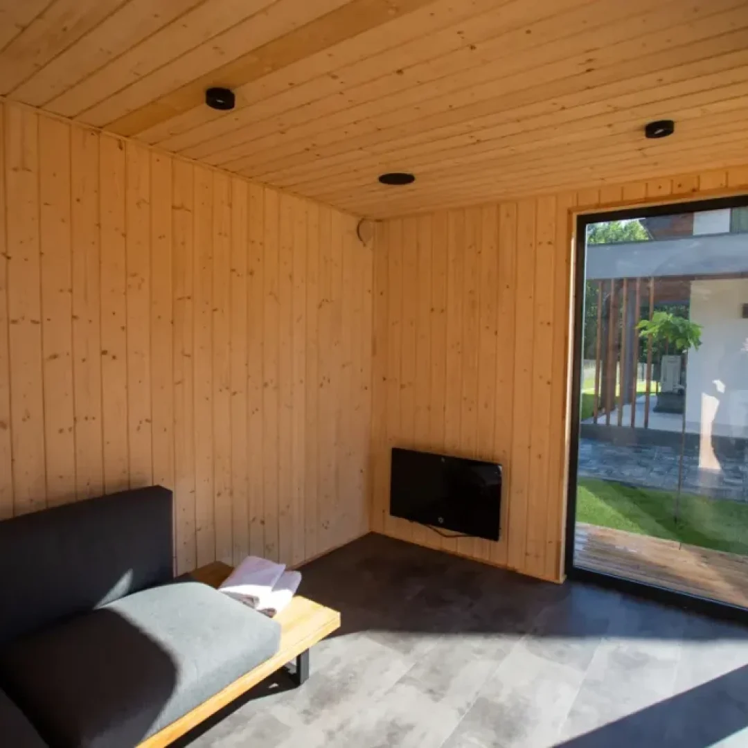 Strefa spa w domu Masuria Rosa to oaza relaksu i luksusu. Goście mogą tu skorzystać z sauny, jacuzzi oraz bali ogrodowej, aby odprężyć się po dniu pełnym aktywności. Dodatkowo basen pozwala na orzeźwienie w cieplejsze dni. Ta wyjątkowa strefa została stworzona, aby zapewnić gościom pełen komfort i relaks podczas ich pobytu, otoczony pięknem przyrody Mazur. Taras w Spa wyposażony w leżaki, na których można opalać się w słoneczne dni.